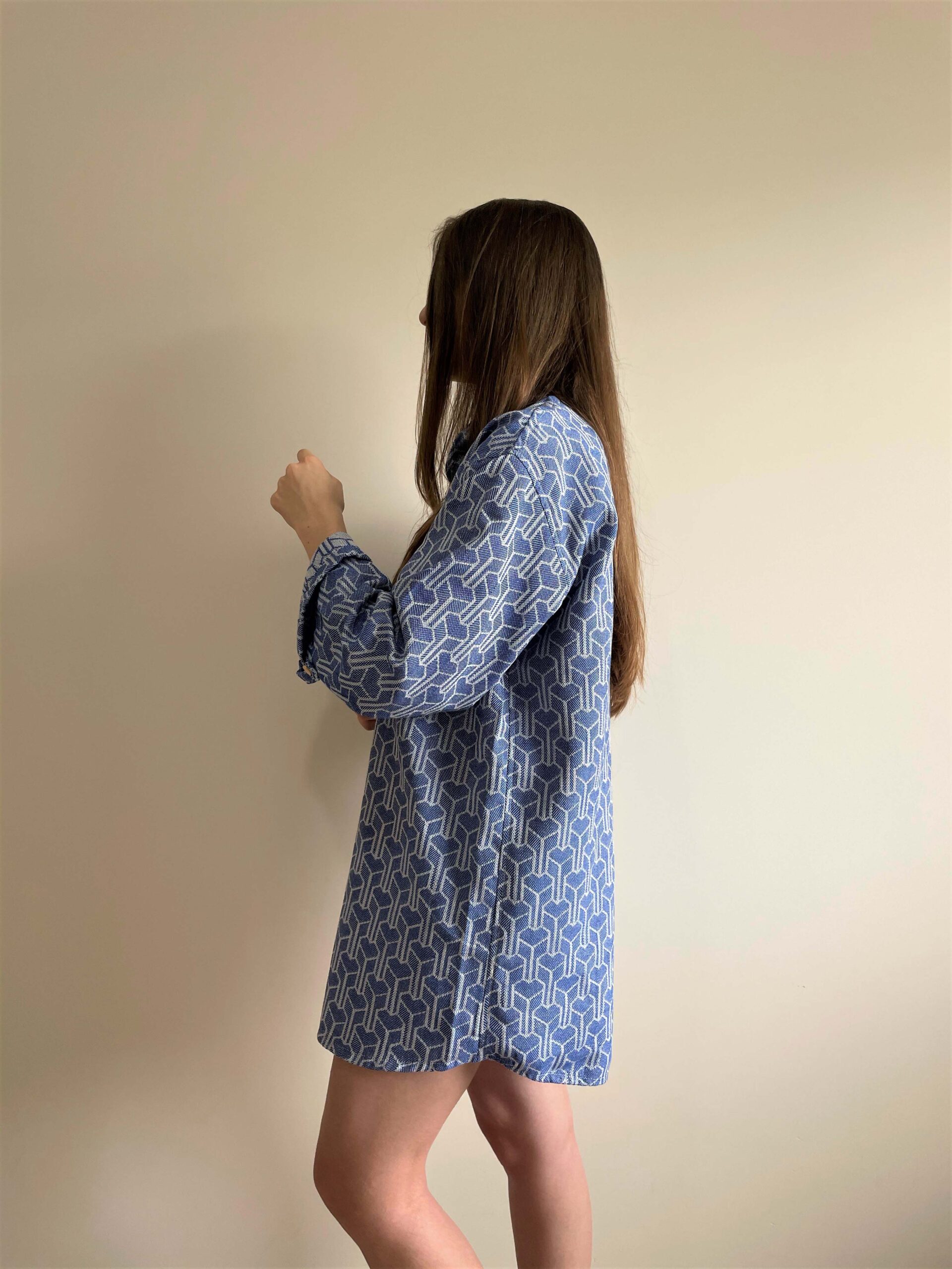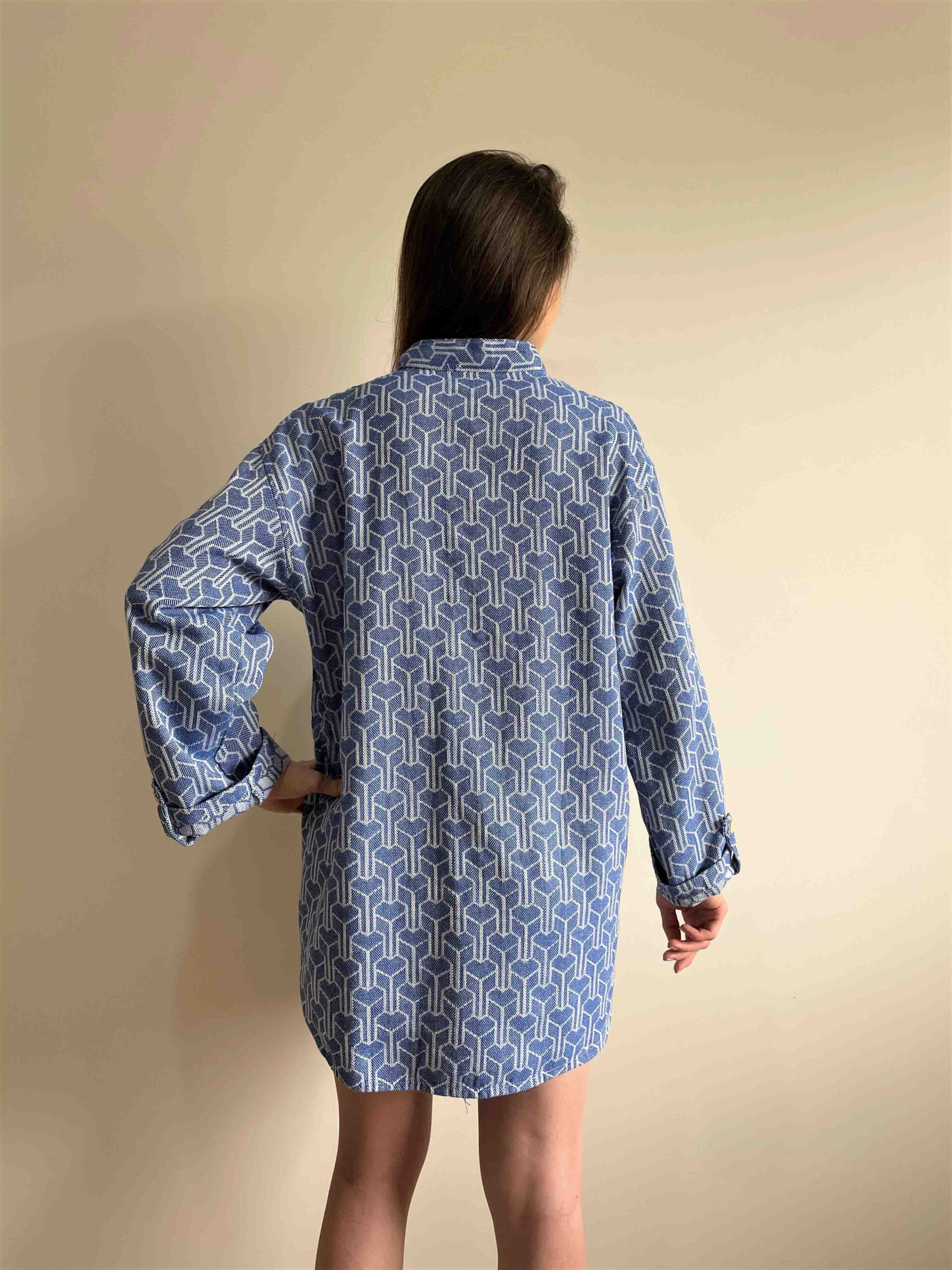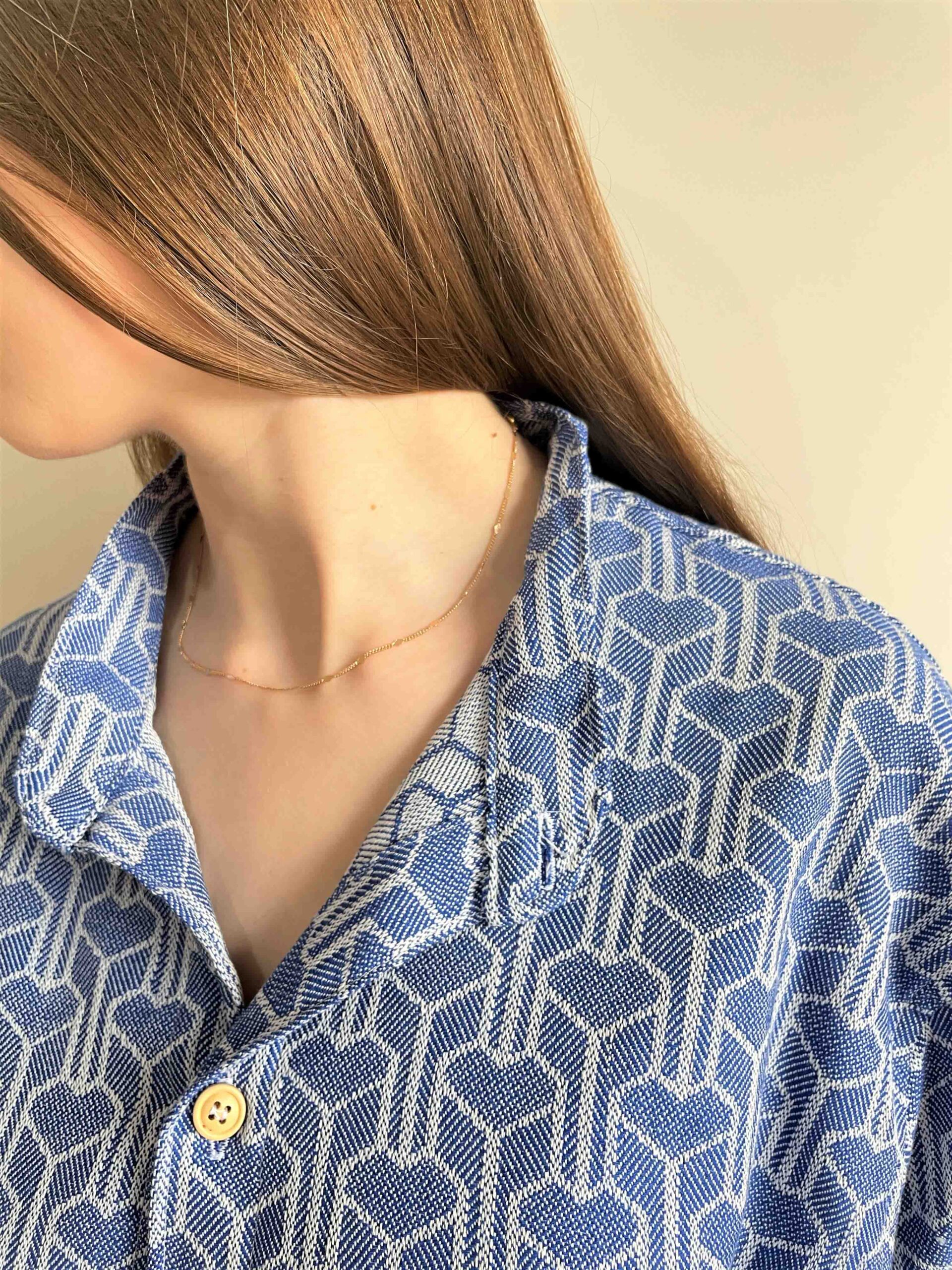 Mavi Renk Geometrik Desen Peştemal Gömlek