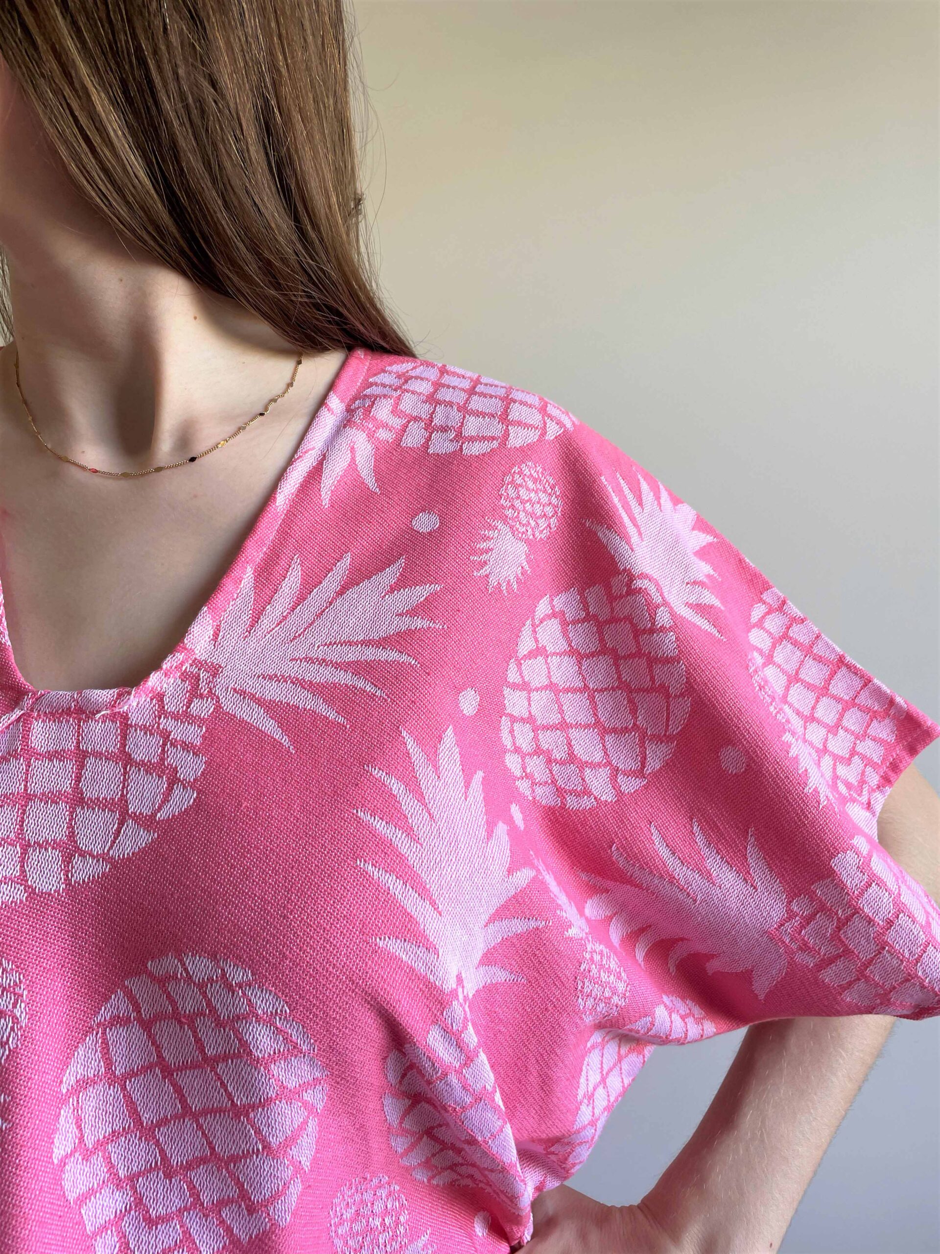 Pembe Renk Ananas Desen Anne Çocuk Kombini