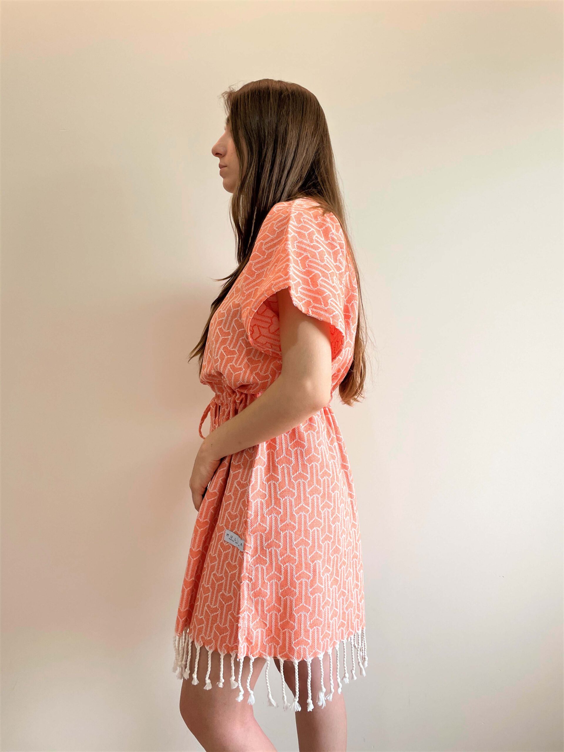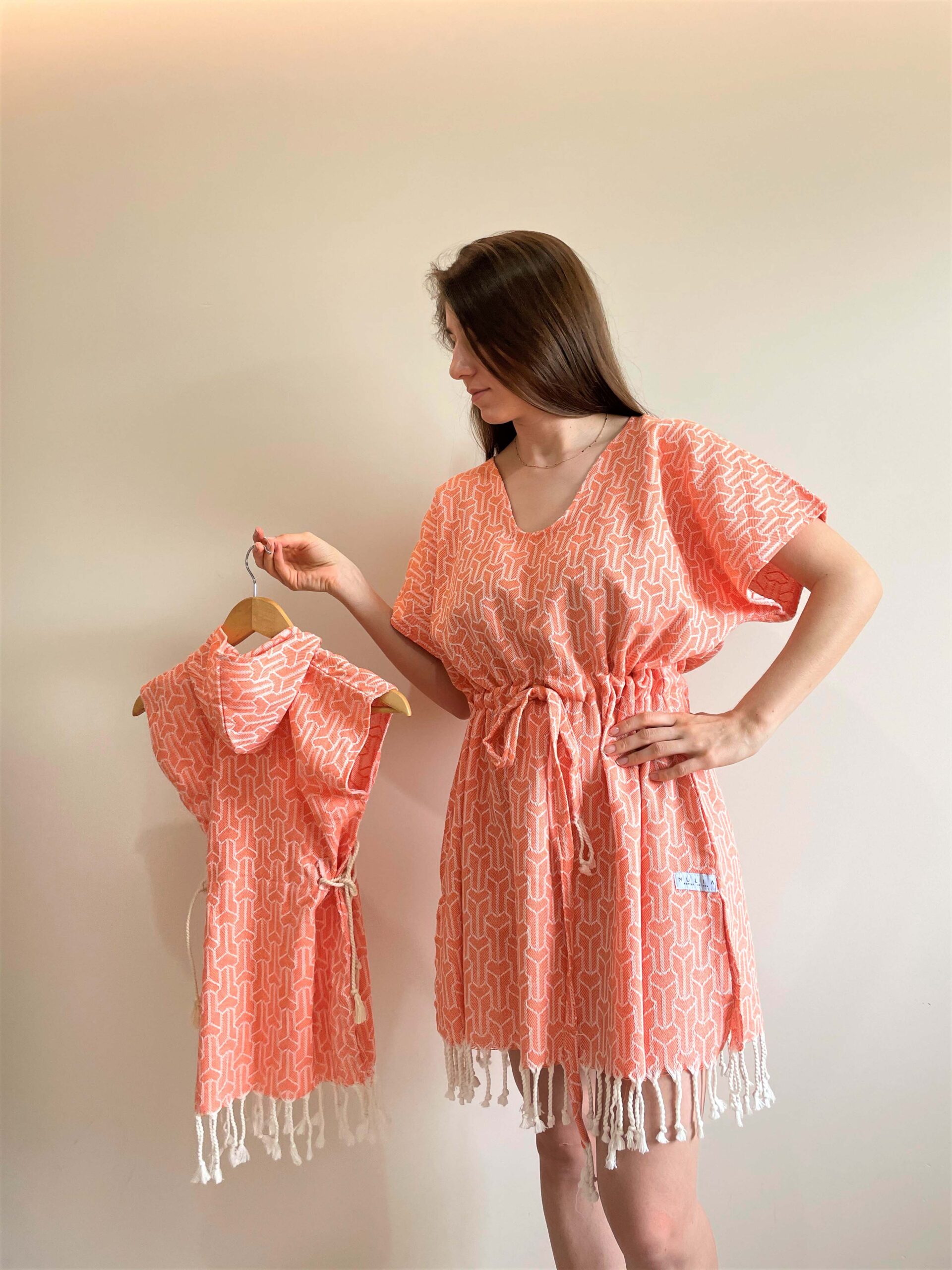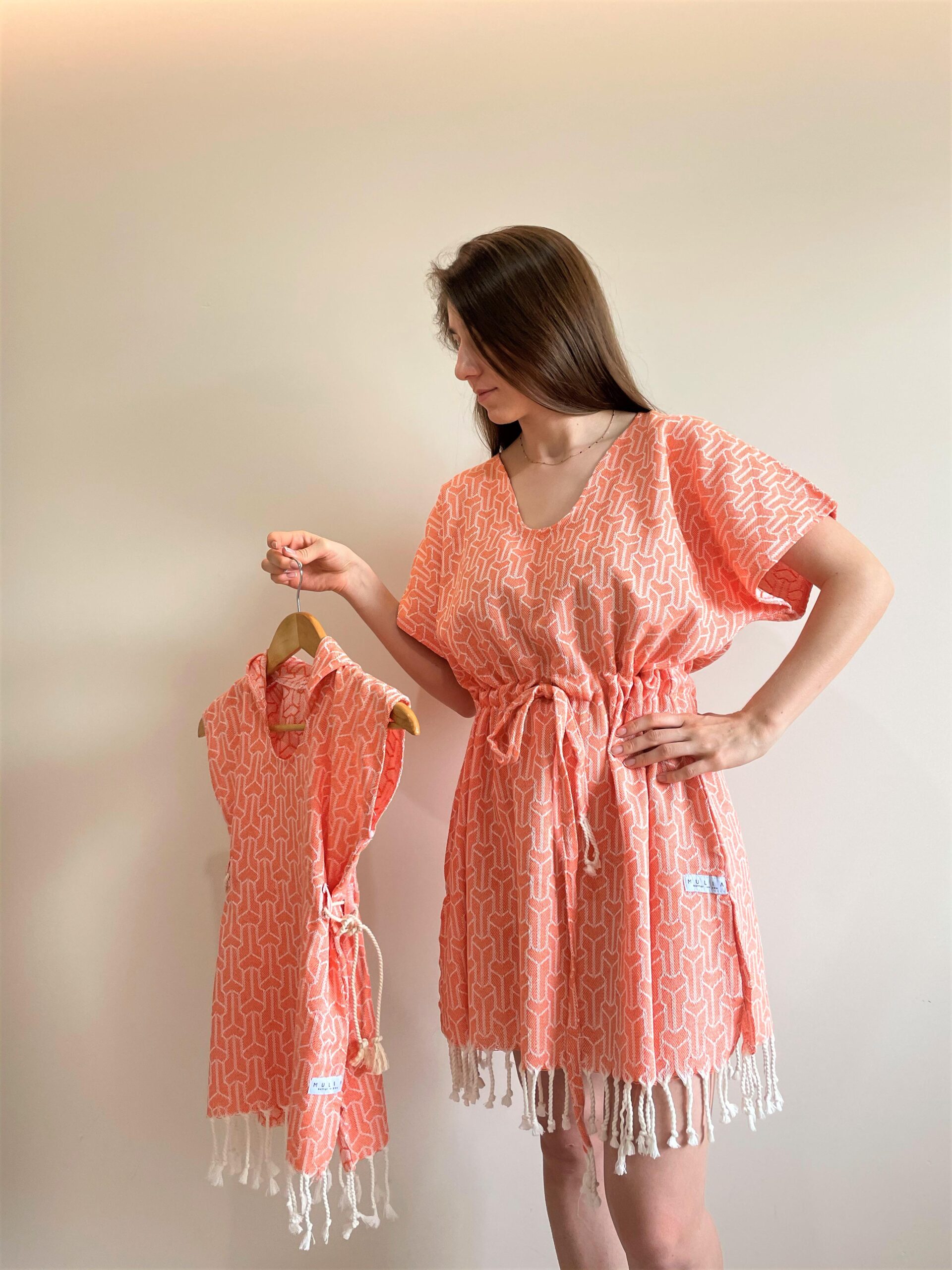 Mulia elbiseleri, eski usul tezgahlarda %100 pamuk dokuma peştemallerden üretilmektedir. Biz sıcak yaz günlerinde havlu taşımaktan ziyade onu giyip çıkma taraftarı olduk. Çocuklarımızla bir örnek giyinince daha da keyifli oldu yazlar. Biz bu uyumu çok sevdik. Dileriz ailecek sizler de seversiniz. Eminiz ki Mulia elbiseleri size daha çok yakışacaktır.
