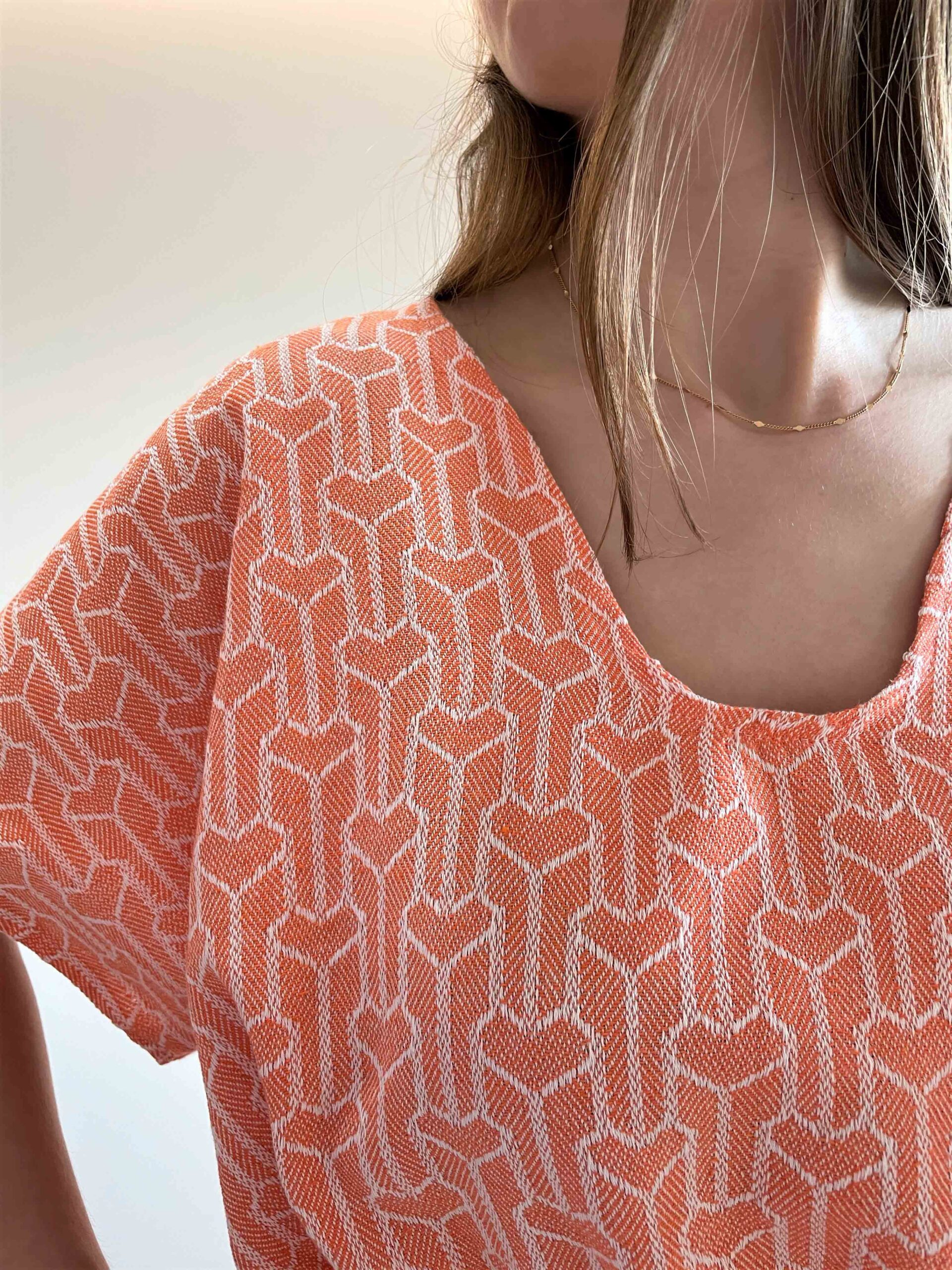 Turuncu Renk Geometrik Desen Anne Çocuk Kombini için 1 değerlendirme
